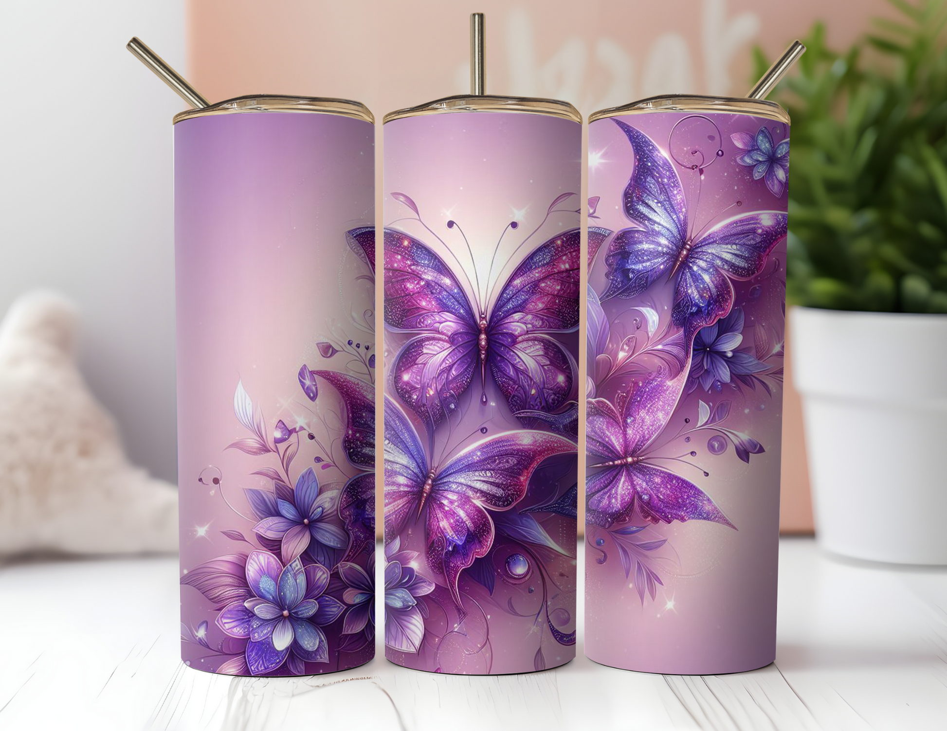 PURPLE BUTTERFLY TUMBLER